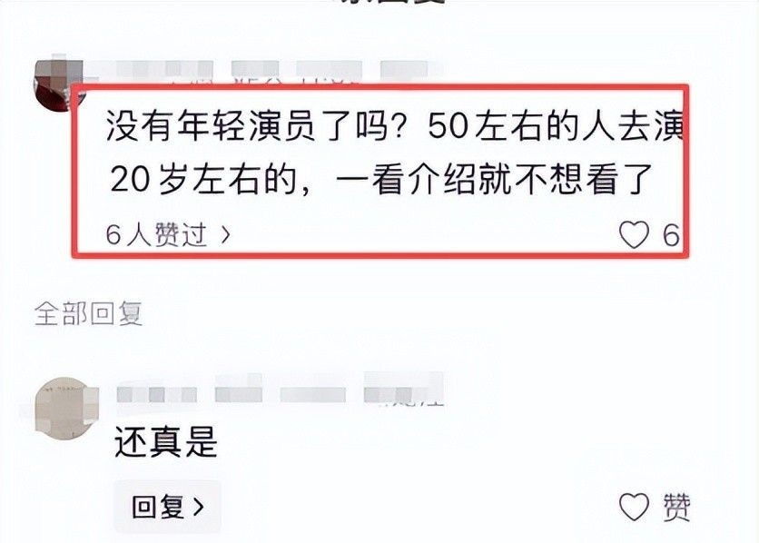 不少观众发问:难道当下已无适龄青年演员可用?五十岁上下艺人强演二十岁角色,实在令人望而却步。